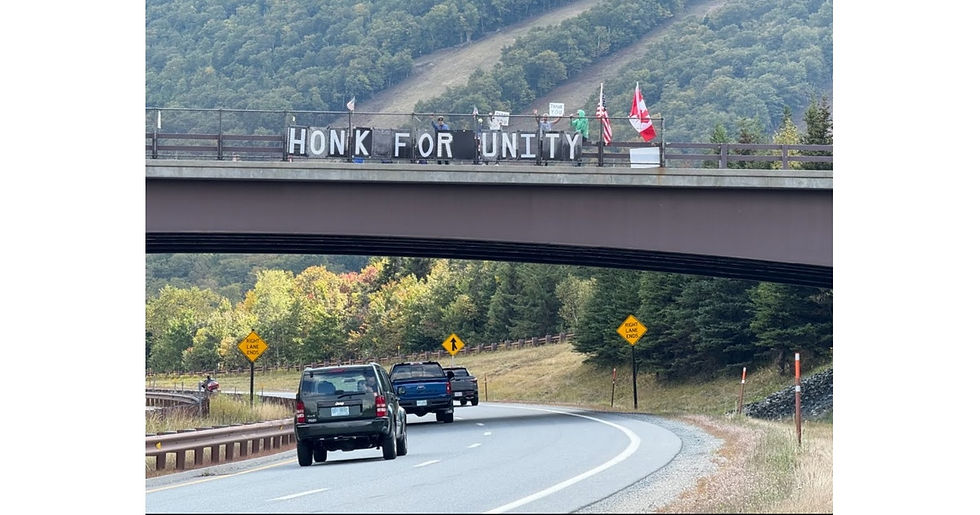 New Hampshire Bridge Brigade Protest Overpass – “ICE Out for Good” Democracy Banner